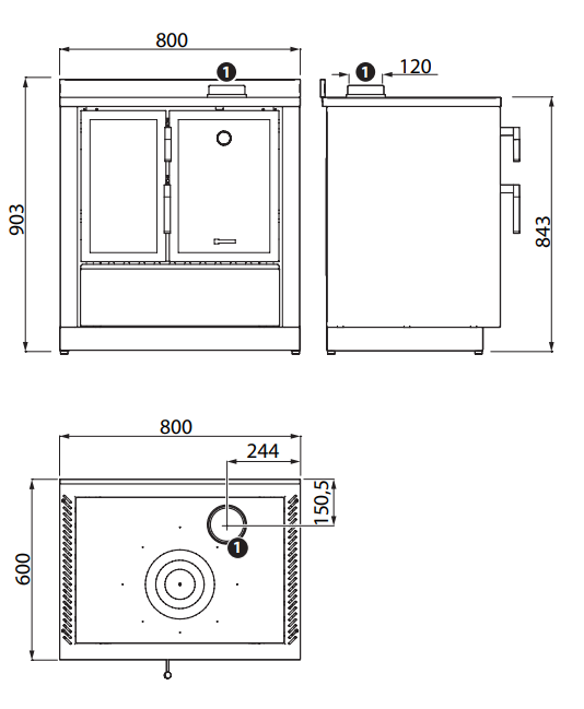 - 80 x 60 x 85 cm (H 90,3 with back profile of the cooking plate)
