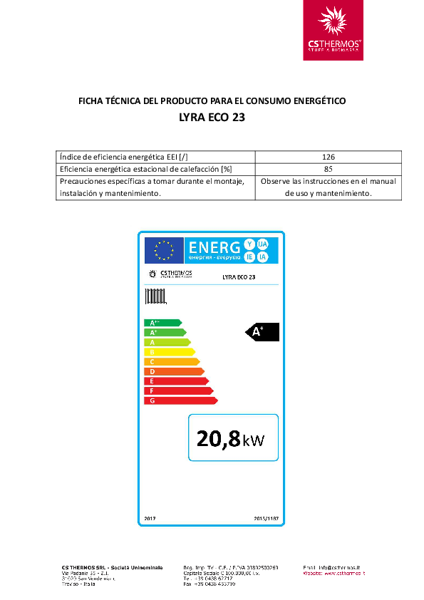 Este producto cumple con la Clase de 4 Estrellas, según los requisitos de emisión y rendimiento del Decreto n°186 de 4 Noviembre 2017 (Italia).
