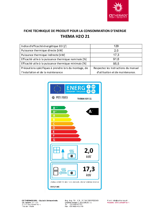 Ce produit est conforme à la Classe 4 Étoiles, conformément aux exigences d'émission et de performance du Décret n°186 du 4 Novembre 2017 (Italie).