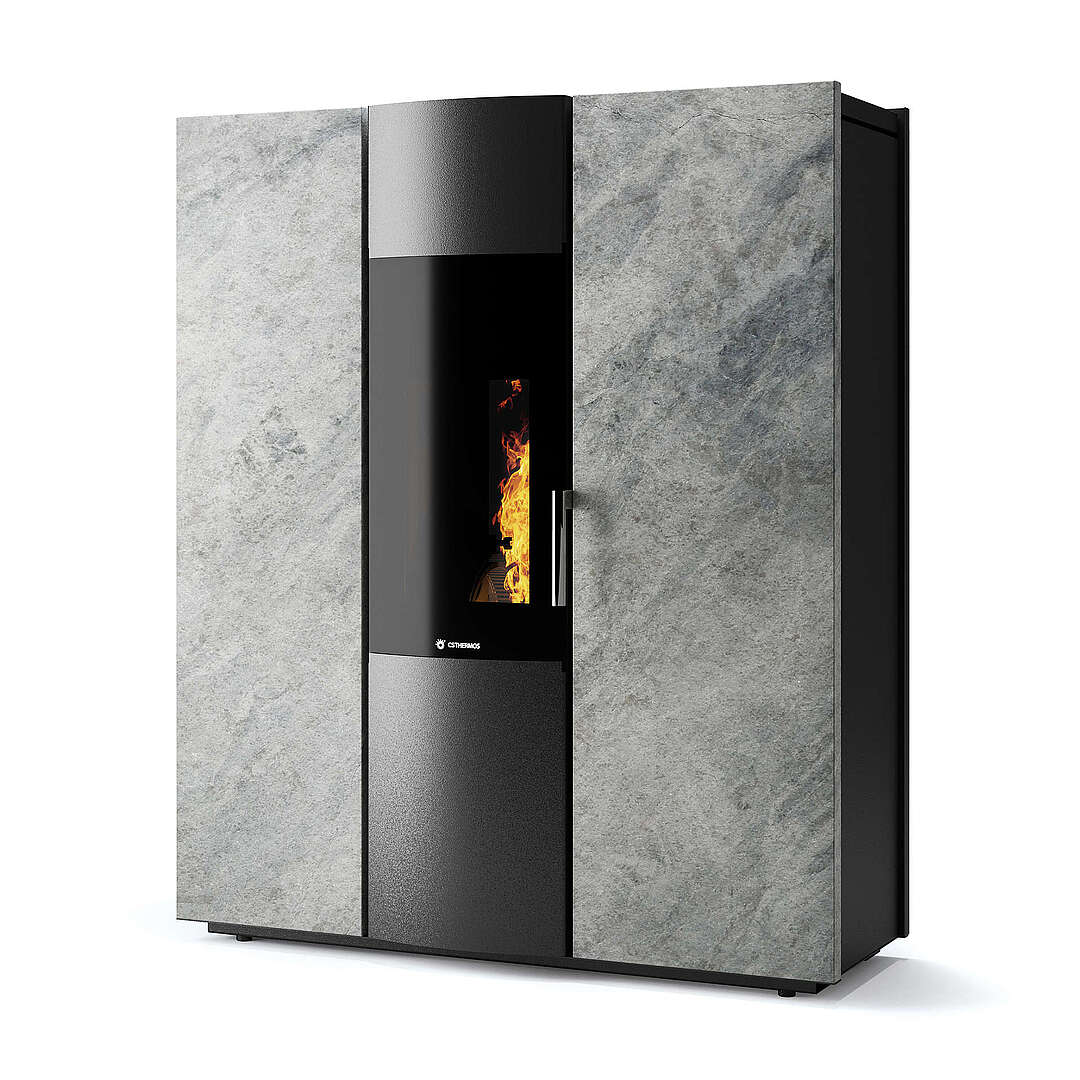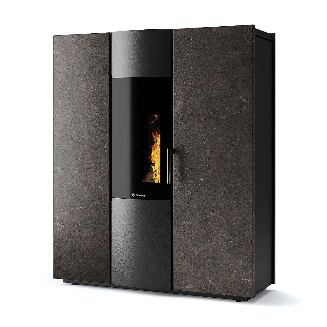 L'équilibre essentiel entre le feu et l'eau Partant de la nature comme source d'inspiration, le nouveau poêle hydraulique Thema H2O embrasse les concepts de l'écologie à travers ses matériaux et ses excellentes performances. Les rendements élevés et la polyvalence des formes qui le caractérisent donnent vie à un thermo-poêle innovant, capable d'être le protagoniste de votre environnement domestique.
