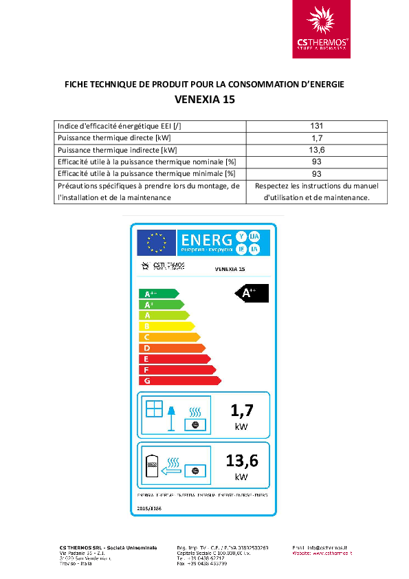 Ce produit est conforme à la Classe 4 Étoiles, conformément aux exigences d'émission et de performance du Décret n°186 du 4 Novembre 2017 (Italie).