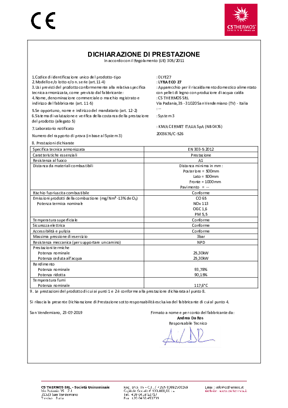 CERTIFICATE SECONDO LE NORMATIVE EUROPEE EN 303-5: 2012