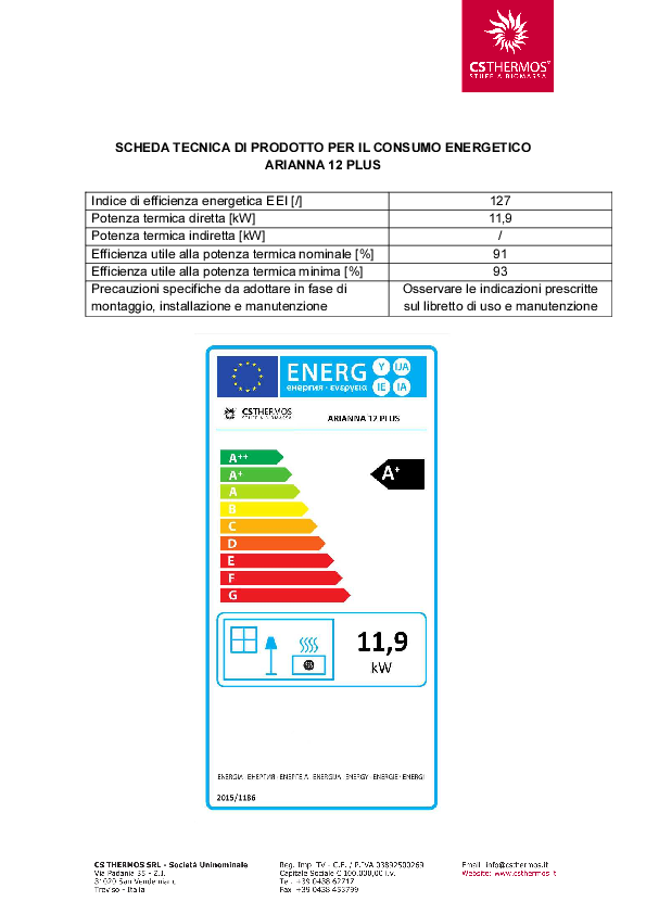 Questo prodotto è conforme alla Classe 4 Stelle secondo i requisiti di emissioni e rendimento del Decreto 7 Novembre 2017, n. 186